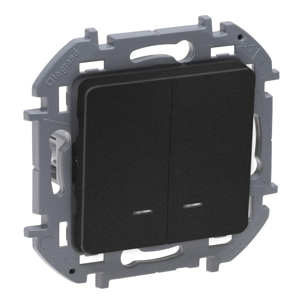 Выключатель двухклавишный с подсветкой/индикацией 10 AX - 250 В Антрацит Legrand INSPIRIA в Барнауле